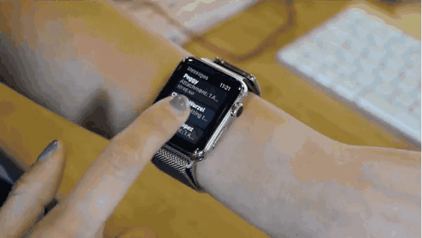 因为手表是压力敏感的,当你按下,它能感应到。在大多数应用程序中,长按可解锁隐藏的选项。例如,长按更改表情符号的颜色。
